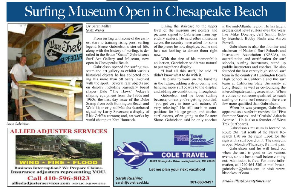 Bruce "Snake" Gabrielson's Surfing Museum and Surf Art Gallery